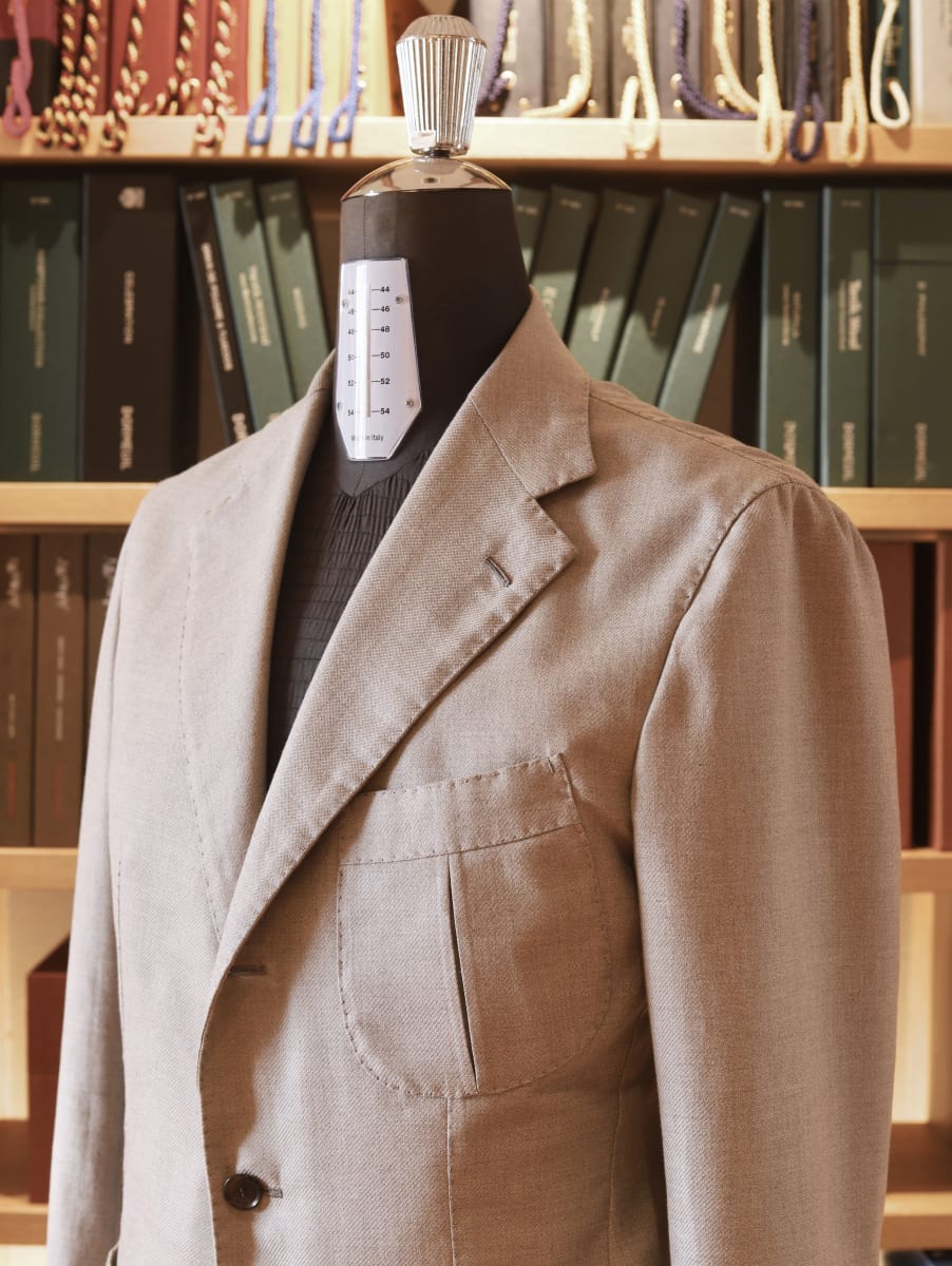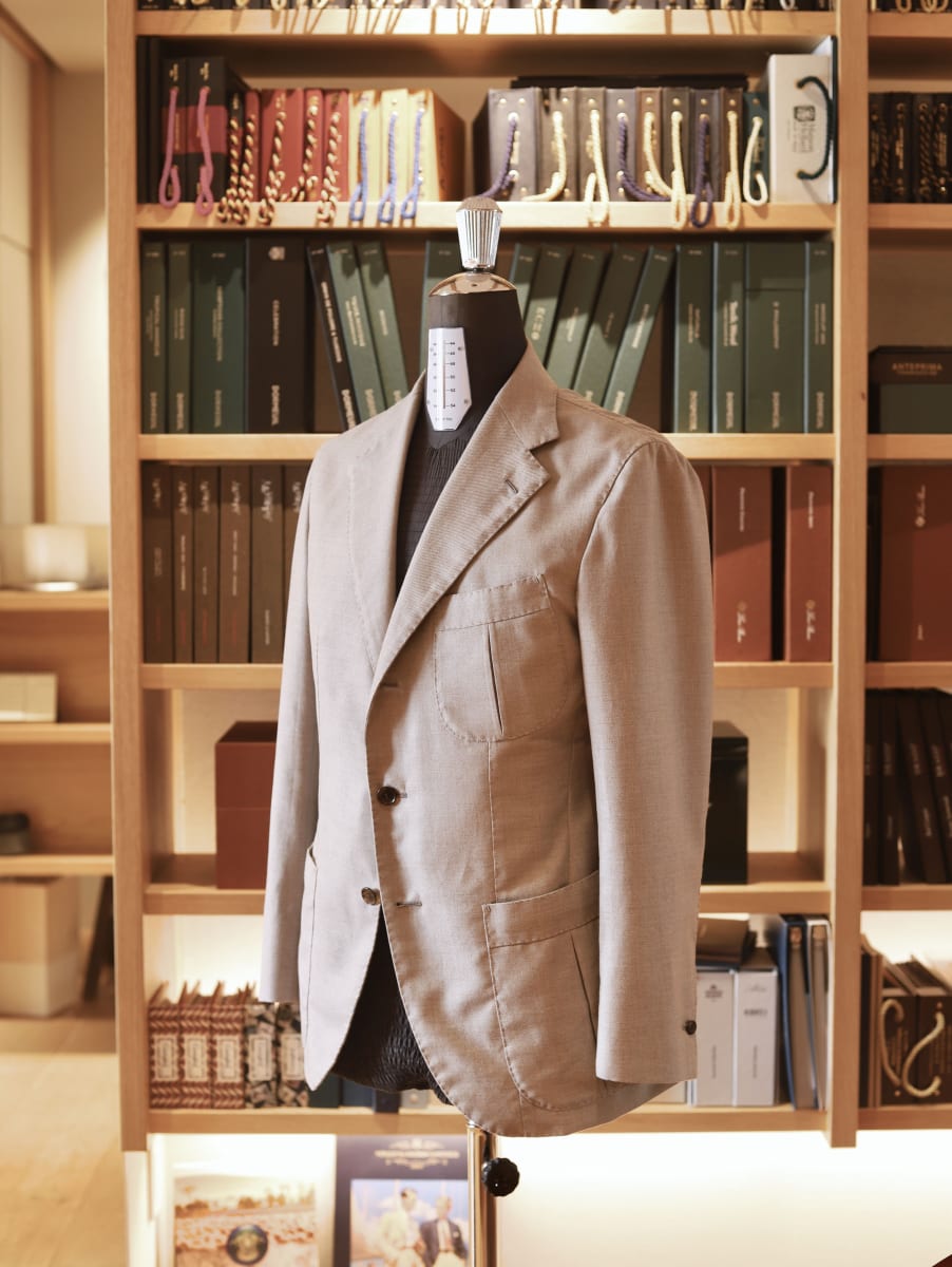 Loro Piana " CASHPIMA "  ロロ・ピアーナのCASHPIMAより、グレージュで仕立てたハンティングジャケット。